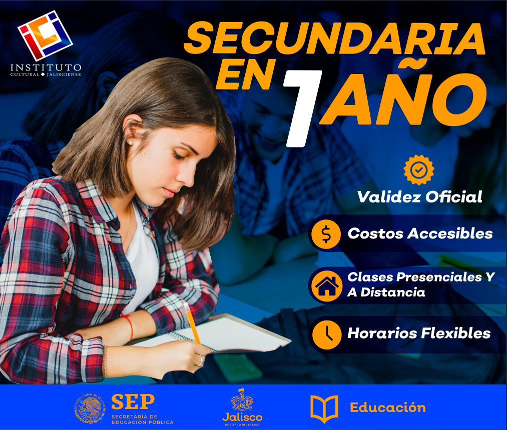 En el Instituto Cultural Jalisciense hemos desarrollado un programa educativo que brinda la oportunidad a jóvenes y adultos sin límite máximo de edad, a retomar sus estudios académicos y obtener el certificado que valide su grado de instrucción, mediante diferentes opciones de secundaria.